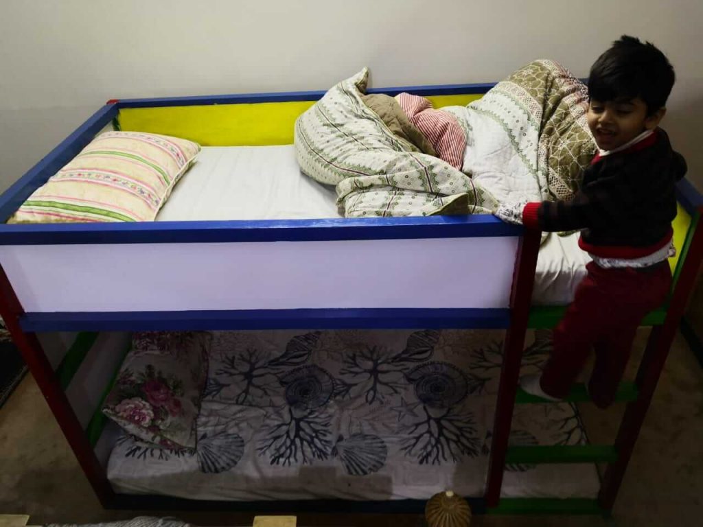 • child fewer height wooden double story bed in Pakistan