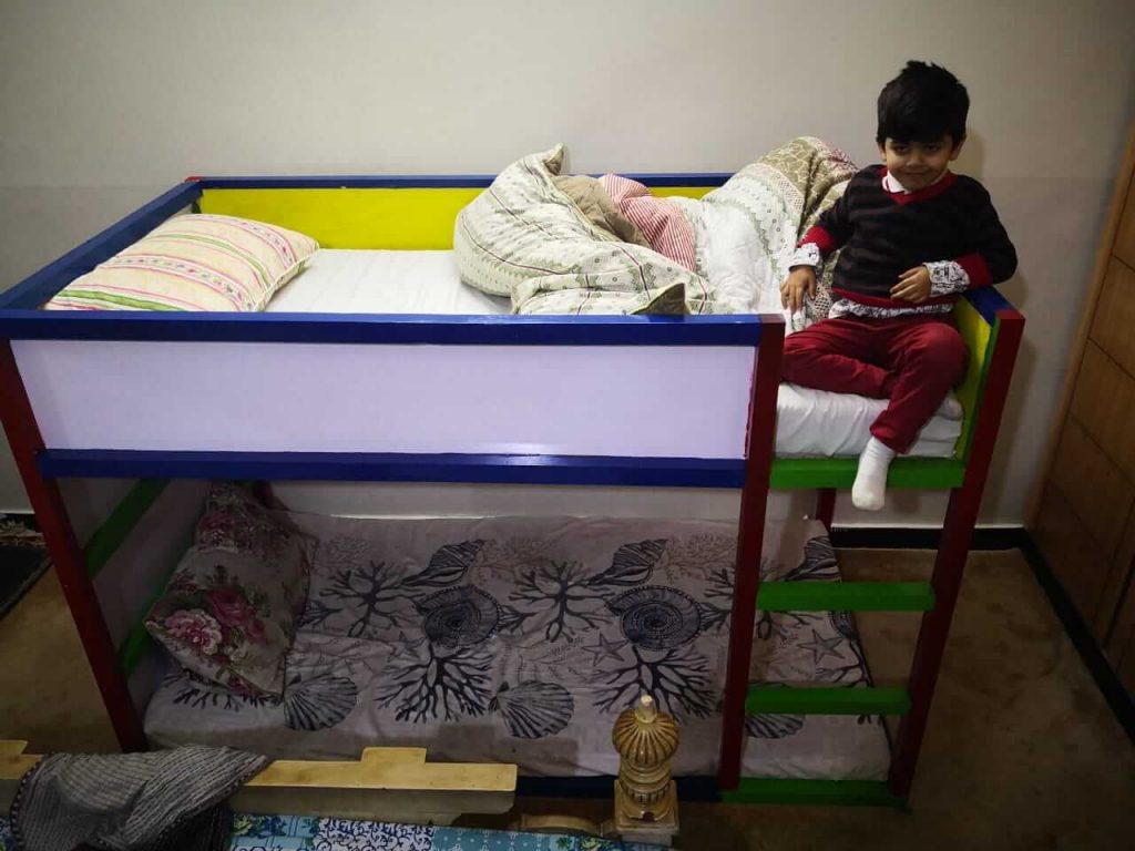 • child fewer height wooden double story bed in Pakistan